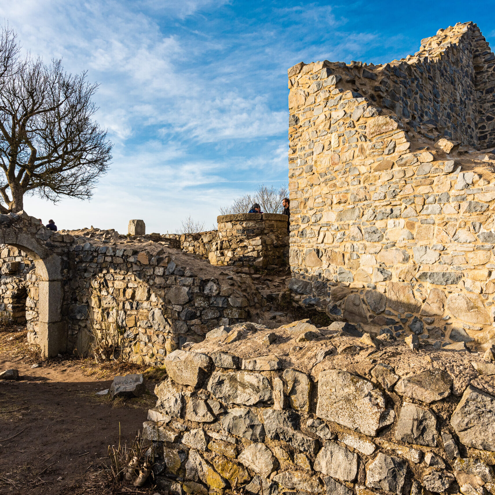 Die Löwenburg ist eine mittelalterliche Burgruine auf dem 455 Meter hohen Berg, etwa 6,6 Kilometer vom Campingplatz entfernt. Sie wurde vermutlich Ende des 12. Jahrhunderts errichtet. Aufgrund ihrer exponierten Lage bietet die Löwenburg einen beeindruckenden Ausblick über das Rheintal.