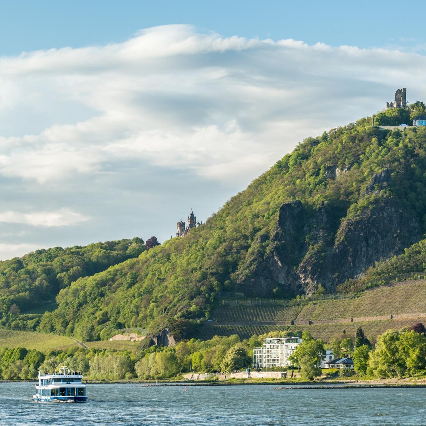 Steigen Sie ein und erleben Sie den Rhein aus einer neuen Perspektive – mit Blick auf Burgen, Städte und Natur (ca. 12 km).