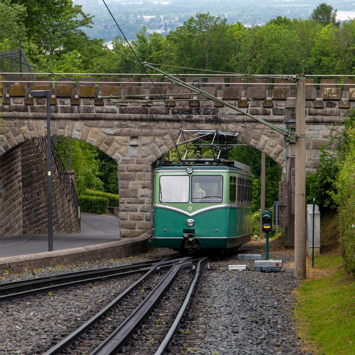 Mit der historischen Zahnradbahn geht es bequem auf den Drachenfels – von oben genießen Sie einen großartigen Blick über das Rheintal (ca. 12 km).
