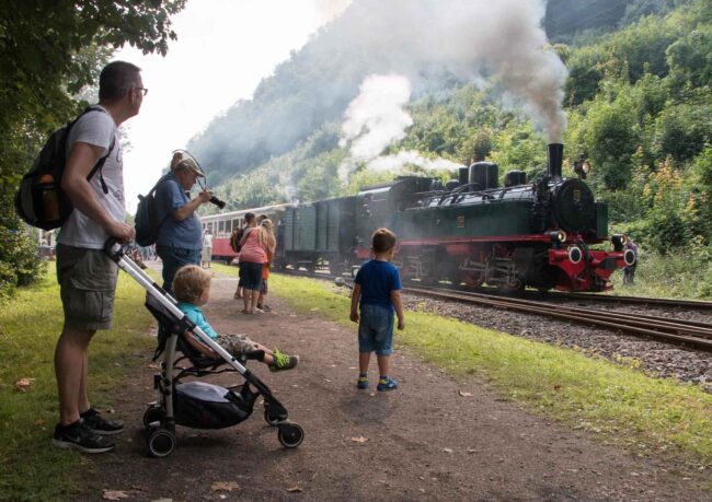 Die historische Schmalspurbahn führt Sie entspannt durch die Vulkaneifel – perfekt für eine nostalgische Panoramafahrt (ca. 26 km).